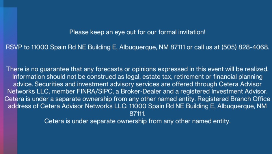 RSVP by calling our office at (505)828-4068 OR by hitting the RSVP button in the top right corner.