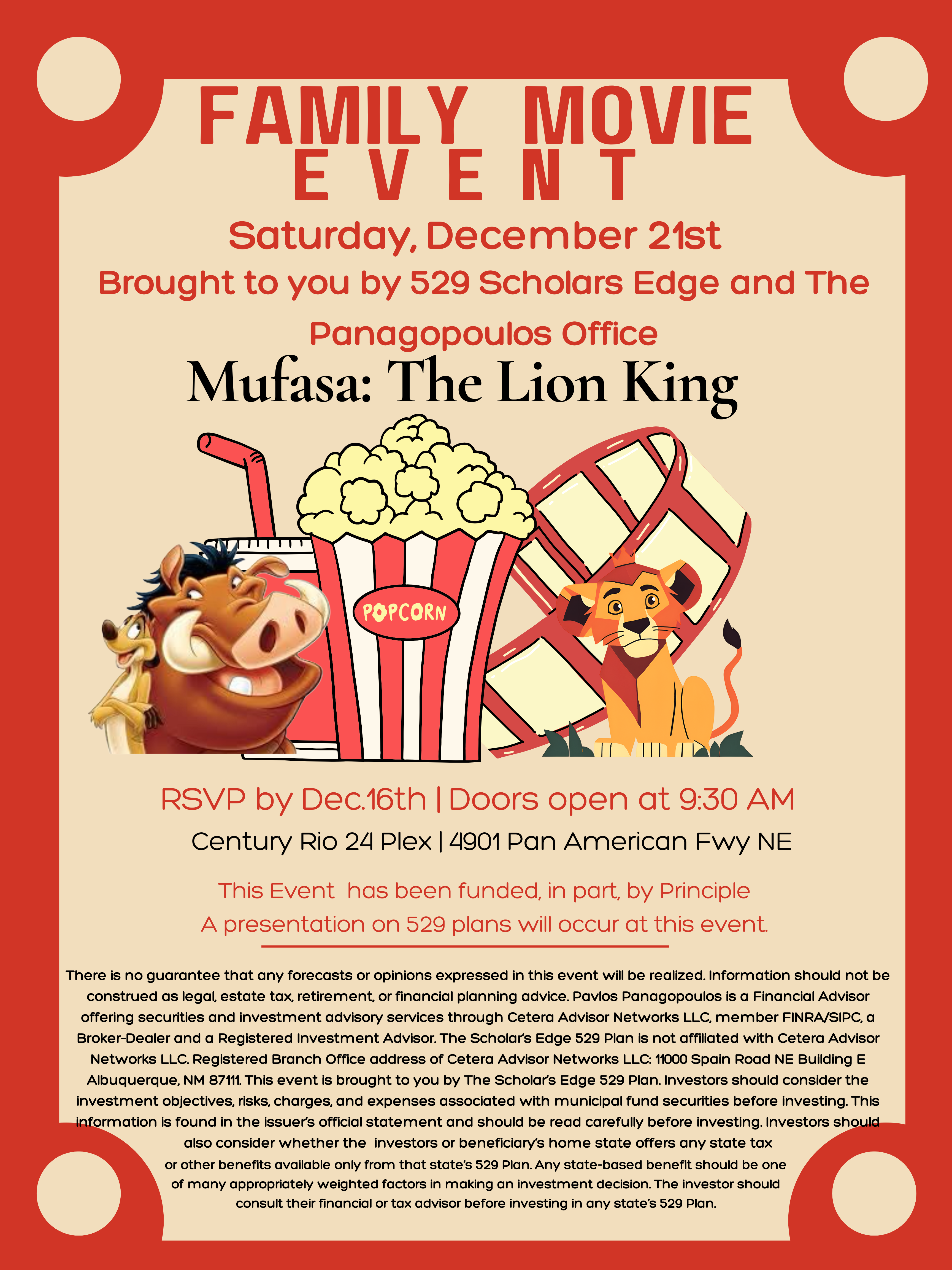 Step into the enchanting world of the Pride Lands and experience the untold story of Mufasa. Enjoy an evening filled with excitement, laughter, and unforgettable moments with fellow clients and friends.